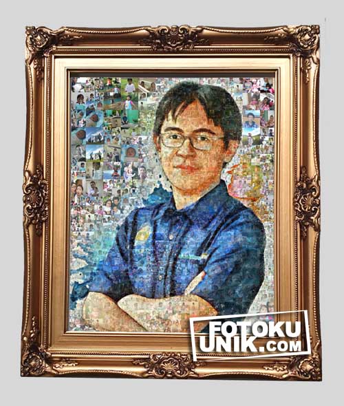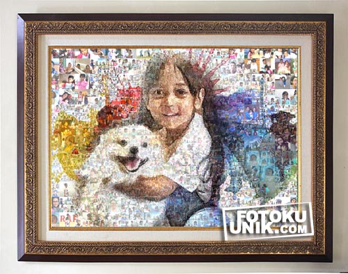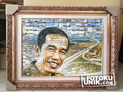 Kolase ukuran 55×75 cm bingkai coklat ornamen